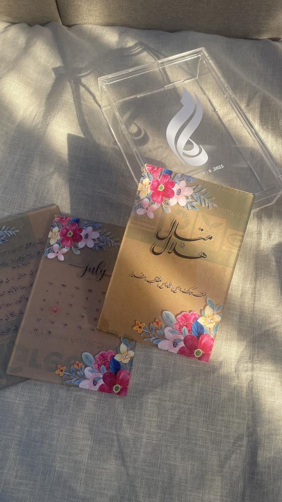 بوكس اكريلك شفاف مع لوقو العرسان بتصميم على حسب طلب العميل مع قصاصات ورقيه اسفل الرساله